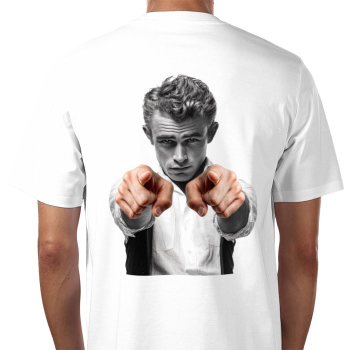 OUR JAMES D REBEL WITH A CAUSE PREMIUM T SHIRT AVAILABLE IN WHITE OR BLACK, PART OF THE ICONS WITH ATTITUDE RANGE. PRINTED ON FRONT AND BACK