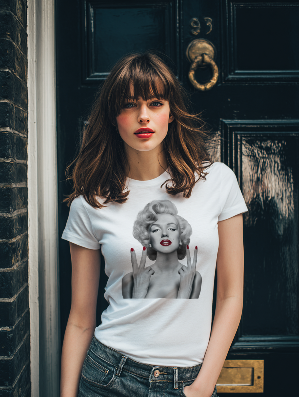 OUR MARILYN M FINGERS ATTITUDE T, PART OF OUR ICONS WITH ATTITUDE RANGE, PRINTED ON FRONT AND BACK